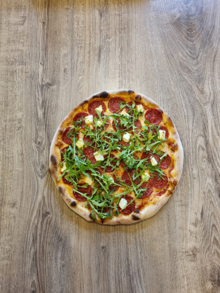 tomato, mozzarella, salám, balkánský sýr, rukola